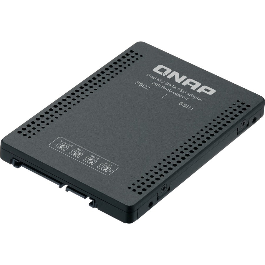 QNAP QDA-A2MAR. Product type: SSD enclosure. Number of storage drives supported: 2, Storage drive size: M.2, Supported storage drive interfaces: M.2. Data transfer rate: 6 Gbit/s. RAID levels: 0,1,JBOD. Product colour: Black