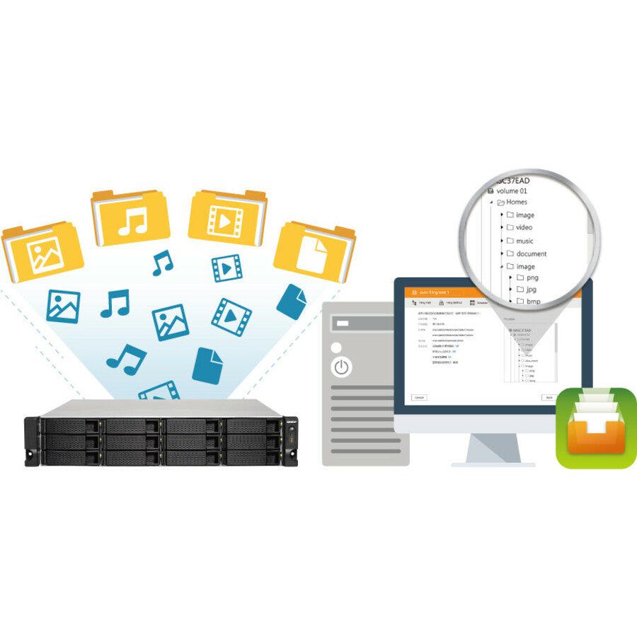 The TS-1273U provides Qfiling and Qsirch for effortlessly organizing and searching for files, providing you with a highly-efficient data storage center. Qfiling automates file organization - simply determine filing conditions, set a schedule, and files will be organized and archived based on your settings. The Qsirch full-text search tool features quick file searching and supports thumbnail previews, content abstract, keyword hints, and more. Both apps provide huge productivity boosts that greatly reduce the time spent looking for files on the NAS, allowing you to focus on other tasks.