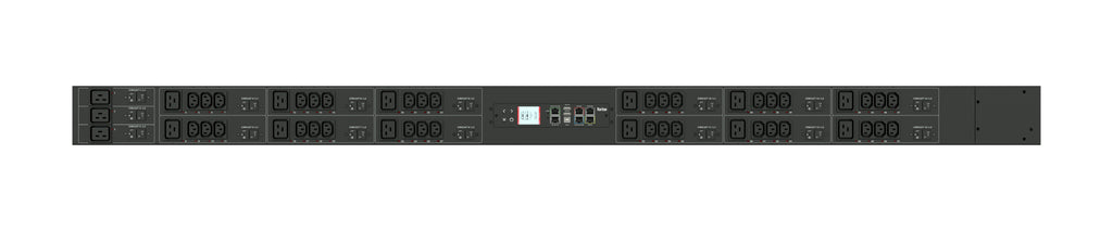 Monitored rack power distribution unit (0U [vertical], 57.5kVA, 51 outlets). INPUT: 415v (3-phase WYE), 80a - Hardwired [AC Terminal Block, No Cord]; OUTPUT: 36@ C13, 15@ C19 outlets; on 15@ 1-pole, 20a Overcurrent Protectors; FEATURES: Billing-Grade (+/- 1%) Energy Metering [kW, kVA, V, A, Power Factor] - per inlet, per breaker/fuse, per outlet; Remote network monitoring via HTML, JSON-RPC, SSH, Telnet, MODBUS/TCP, and SNMPv3. Onboard embedded processor with minimum 536MHz clock speed, 16MB SPI Flash, and 64MB DDR2 RAM. Cascading upto 16 PDU's using single Ethernet or USB connection. Environmental monitoring [temp/humidity] capable – up to 32 sensors. Individual outlet numbers labeled on chassis. Automated deployment via TFTP, DHCP, SSH(CLI), or USB Flash Drives. WiFi Capable. USB Webcam Capable. iPad/iPhone/Android App. Dual 10/100/1000 Ethernet port. Tri-color status LED per receptacle. Breaker metering and alarming (0V detection). Max Dimensions 109mm x 80mm x 1780mm (4.3in x 3.1in x 70.1in). Max Weight 9.8 kg. Maximum ambient temperature 60C at full load.