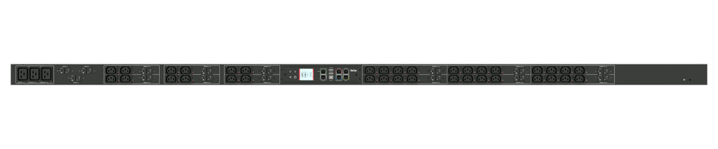 Monitored rack power distribution unit (0U [vertical], 57.5kVA, 39 outlets). INPUT: 415v (3-phase WYE), 80a - Hardwired [AC Terminal Block, No Cord]; OUTPUT: 36@ C13, 3@ C19 outlets; on 15@ 1-pole, 20a Overcurrent Protectors; FEATURES: Billing-Grade (+/- 1%) Energy Metering [kW, kVA, V, A, Power Factor] - per inlet, per breaker/fuse, per outlet; Remote network monitoring via HTML, JSON-RPC, SSH, Telnet, MODBUS/TCP, and SNMPv3. Onboard embedded processor with minimum 536MHz clock speed, 16MB SPI Flash, and 64MB DDR2 RAM. Cascading upto 16 PDU's using single Ethernet or USB connection. Environmental monitoring [temp/humidity] capable – up to 32 sensors. Individual outlet numbers labeled on chassis. Automated deployment via TFTP, DHCP, SSH(CLI), or USB Flash Drives. WiFi Capable. USB Webcam Capable. iPad/iPhone/Android App. Dual 10/100/1000 Ethernet port. Tri-color status LED per receptacle. Breaker metering and alarming (0V detection). Max Dimensions 59mm x 100mm x 1981mm (2.3in x 3.9in x 78.0in). Max Weight 11.4 kg. Maximum ambient temperature 60C at full load.
