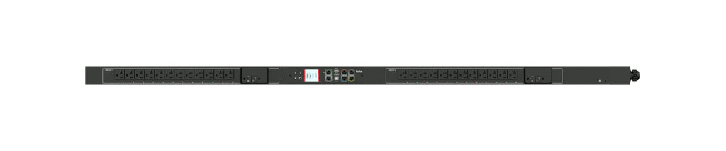 Monitored rack power distribution unit (0U [vertical], 5kVA, 24 outlets). INPUT: 208v, 30a - NEMA L14-30P plug (3P4W); OUTPUT: 24@ 5-20R outlets; on 4@ 1-pole, 20a Overcurrent Protectors; FEATURES: Billing-Grade (+/- 1%) Energy Metering [kW, kVA, V, A, Power Factor] - per inlet, per breaker/fuse, per outlet; Remote network monitoring via HTML, JSON-RPC, SSH, Telnet, MODBUS/TCP, and SNMPv3. Onboard embedded processor with minimum 536MHz clock speed, 16MB SPI Flash, and 64MB DDR2 RAM. Cascading upto 16 PDU's using single Ethernet or USB connection. Environmental monitoring [temp/humidity] capable – up to 32 sensors. Individual outlet numbers labeled on chassis. Automated deployment via TFTP, DHCP, SSH(CLI), or USB Flash Drives. WiFi Capable. USB Webcam Capable. iPad/iPhone/Android App. Dual 10/100/1000 Ethernet port. Tri-color status LED per receptacle. Breaker metering and alarming (0V detection). Max Dimensions 52mm x 65mm x 1539mm (2.1in x 2.6in x 60.6in). Max Weight 5.7 kg. Maximum ambient temperature 60C at full load.