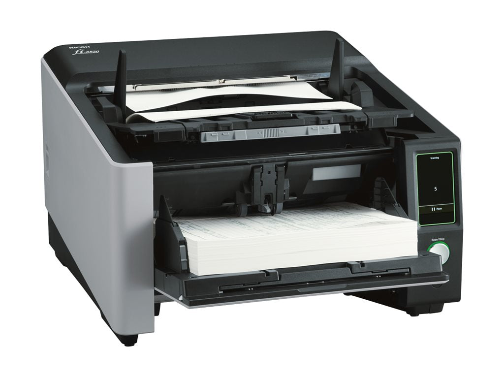 Maximize ROI with speed and performance. The RICOH fi-8820 production scanner is purpose-built to deliver sustained performance, optimized throughput, and an efficient document workflow. High-speed, double-sided scanning, speeds of up to 120 pages per minute / 240 images per minute; 500-sheet automatic document feeder (ADF); 4.3" touchscreen display designed for easy use.