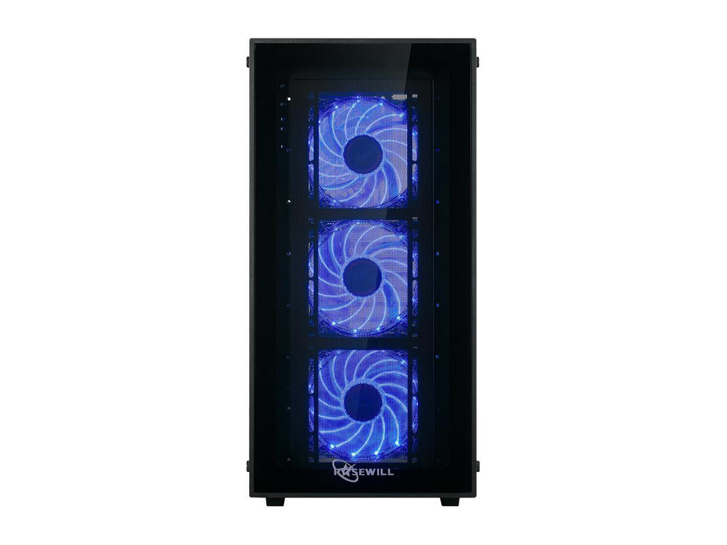 Supports various gaming hardware configurations while maintaining cool system temperatures with four pre-installed 120mm blue LED case fans.