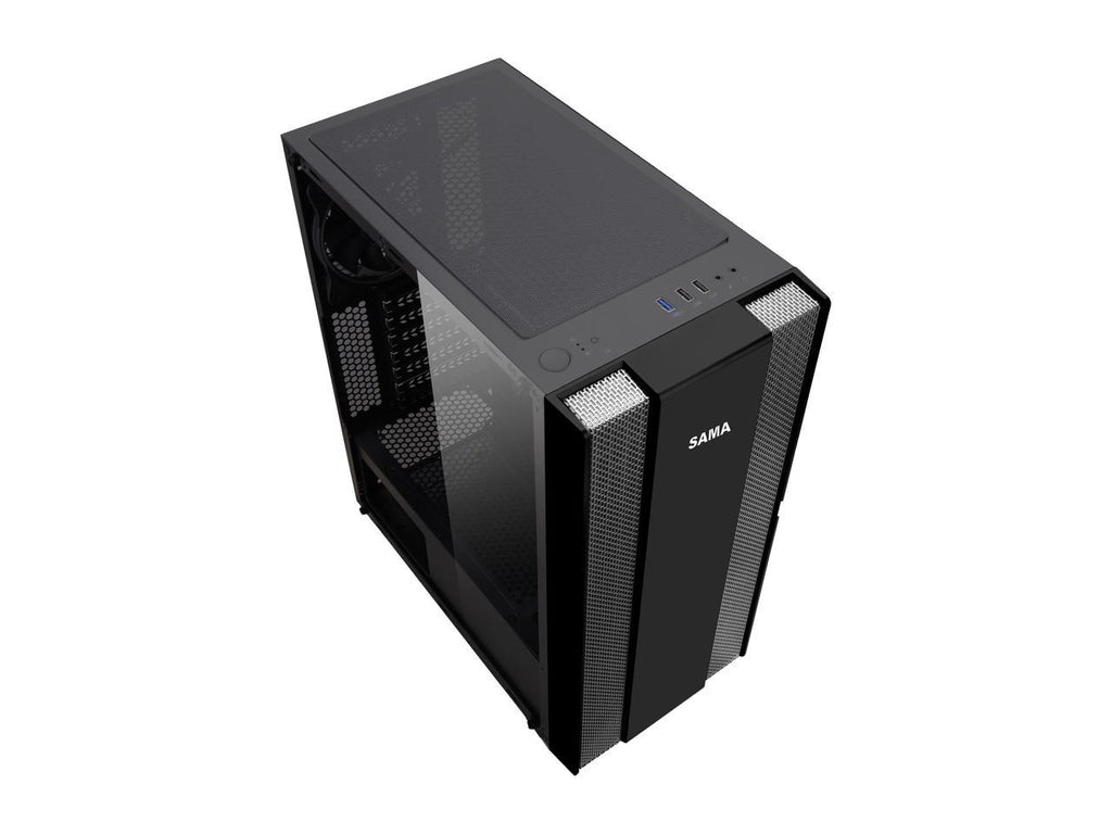 Build a PC that looks as good as it performs with the Sama-Z3 ATX Mid Tower case. It has a pre-installed 120mm halo LED ring rear fan that creates dynamic lighting, which also works with ventilation holes on the front, top and rear panel to deliver optimal airflow circulation. All components you choose to install will perform at their best without thermal issues. You can admire them through a full-size tempered-glass side panel.