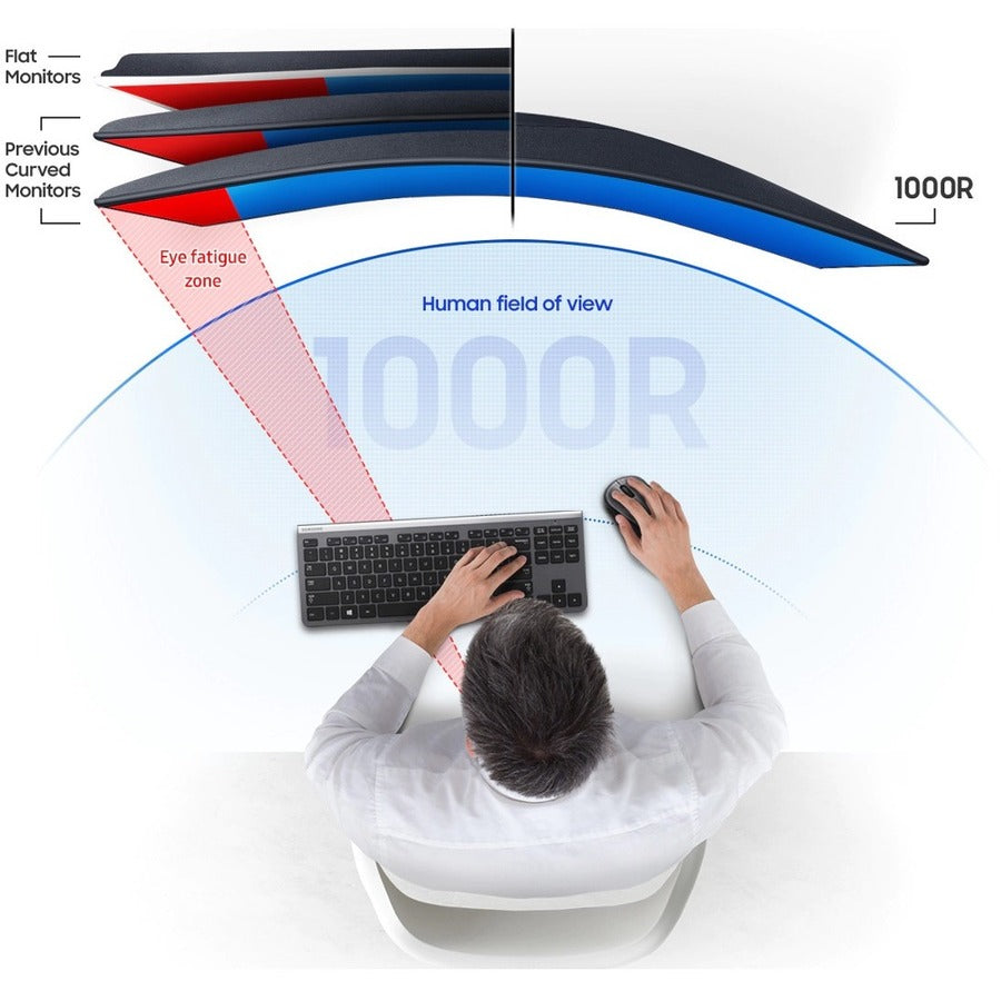 In comparison to conventional monitors that have less curve, 1000R closely fits the human field of view for less eye strain. The whole screen can be seen in just one glance to limit visual fatigue, even during sustained use.