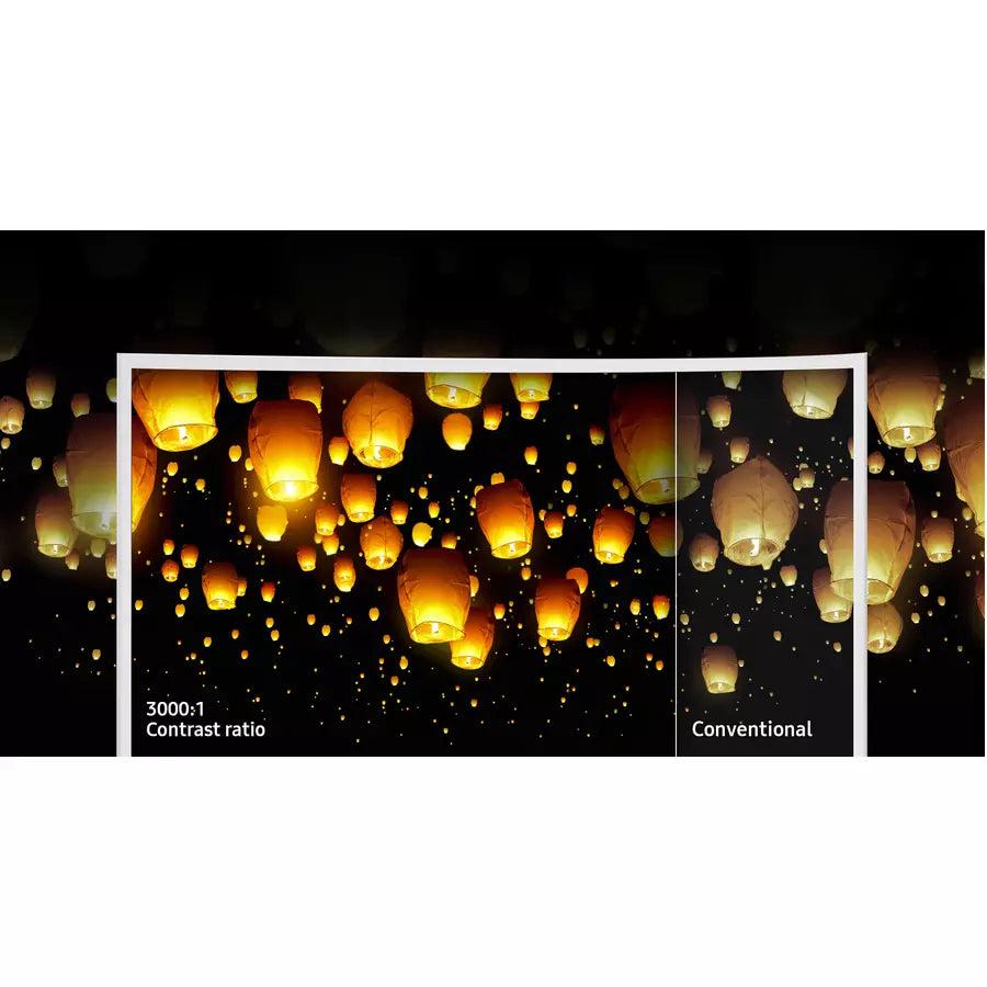 3000:1 contrast ratio: Samsung’s VA panel technology provides a 3000:1 contrast ratio that delivers deeper blacks, more brilliant whites, and richer colors for clearer, more vibrant images • Reduced light leakage: Samsung’s curved display technology minimizes light leakage from the screen edges to ensure more uniform blacks across the entire viewing area.