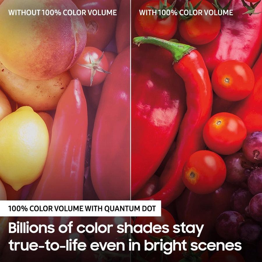 - Quantum dots produce over a billion shades of color that stay true-to-life even in bright scenes. Disclaimer: QLED televisions can produce 100% Color Volume in the DCI-P3 color space, the format for most cinema screens and HDR movies for television.