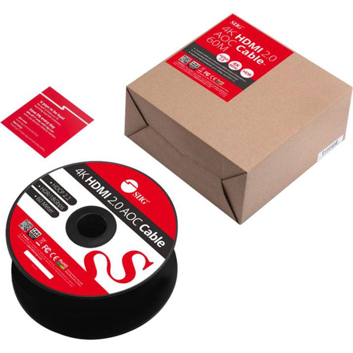 SIIG 4K HDMI 2.0 AOC Cable - 60m - 196.85 ft Fiber Optic A/V Cable for Audio/Video Device, Blu-ray Player, Set-top Box, Gaming Console, TV, Monitor, Projector, HDTV, Desktop Computer, Notebook - First End: 1 x 19-pin HDMI 2.0 Type A Digital Audio/Video - Male - Second End: 1 x 19-pin HDMI 2.0 Type A Digital Audio/Video - Male - 18 Gbit/s - Supports up to 3840 x 2160 - Shielding - Gold Plated Connector - Black
