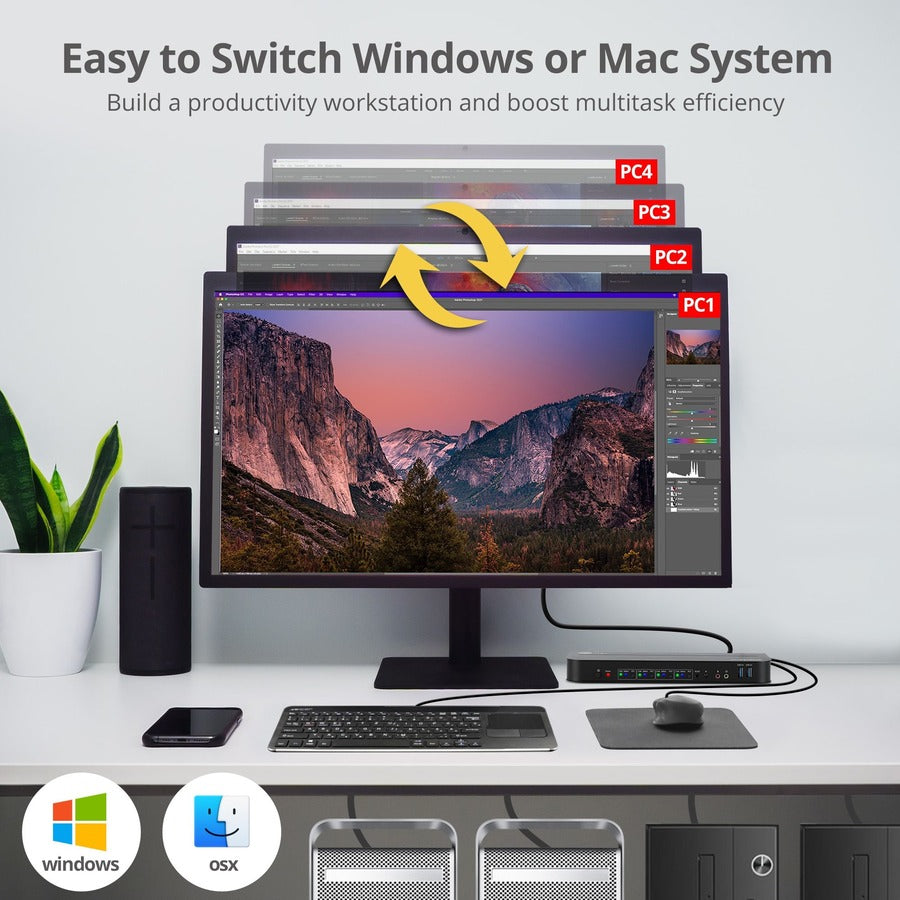 - Control four computers with HDMI 4@60Hz video system via one set of keyboard and mouse