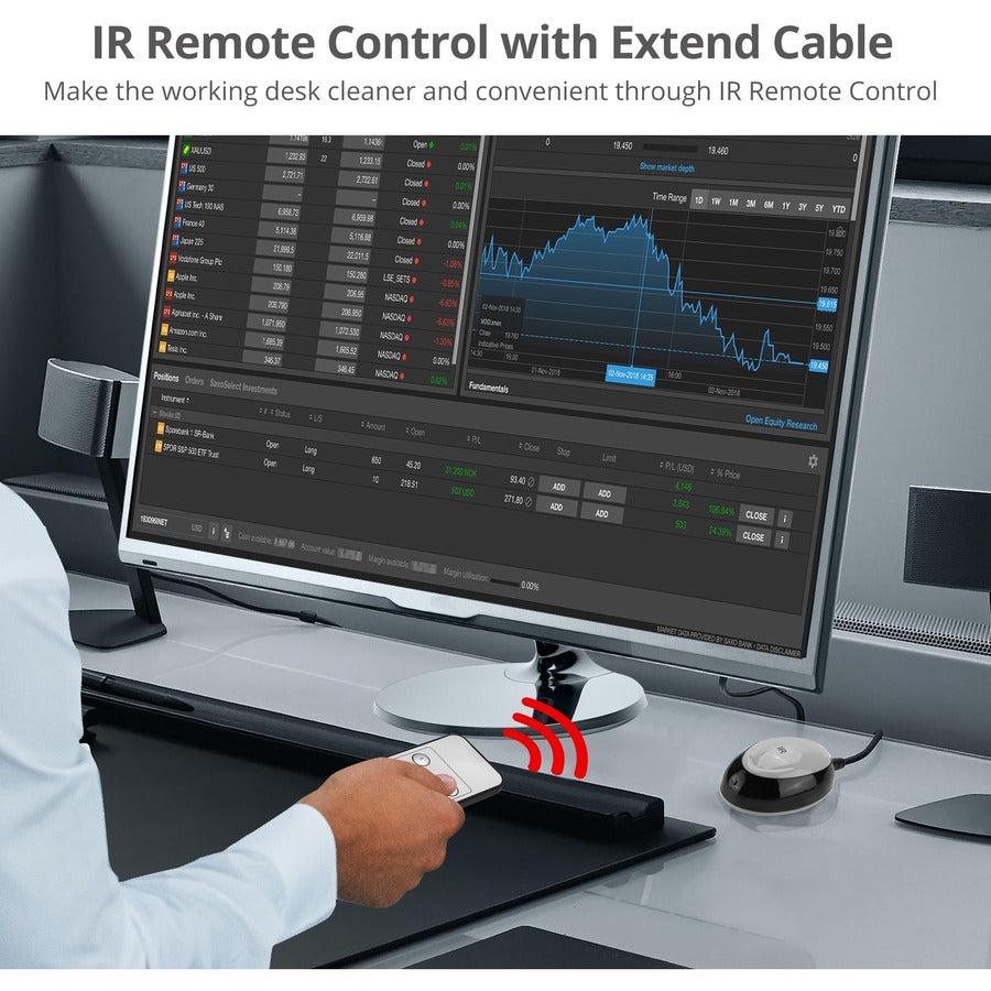 Comes with four HDMI video input ports, four USB 3.2 Gen 1 Type-B ports (Host), twelve 3.5mm phone jacks to connect stereo speakers/earphone and microphone, one HDMI video output port, two USB 3.2 Gen 1 Type-A, two USB 2.0 for keyboard & mouse connection, one 3.5mm Infrared jack to extend the IR signal, one IR sensor, two switch buttons, one power button, and one DC power jack (5V/3A)