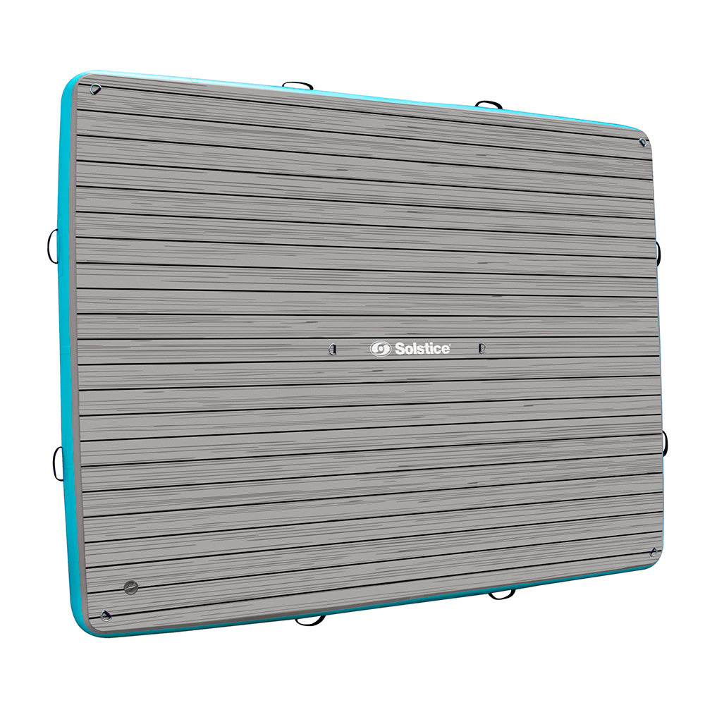 The 10' x 8' dock is constructed to comfortably fit up to 8 people with minimal tossing, turning, or tipping. The faux-wood traction pad for luxury look & feel. Dock is constructed with an 8" core providing additional buoyancy & stability.