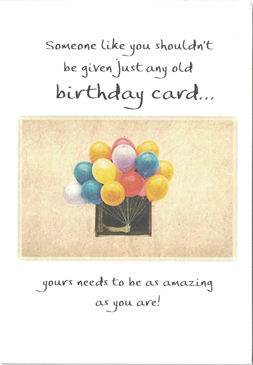 Front Message: Someone like you shouldn't be given just any old birthday card...your needs to be as you are!