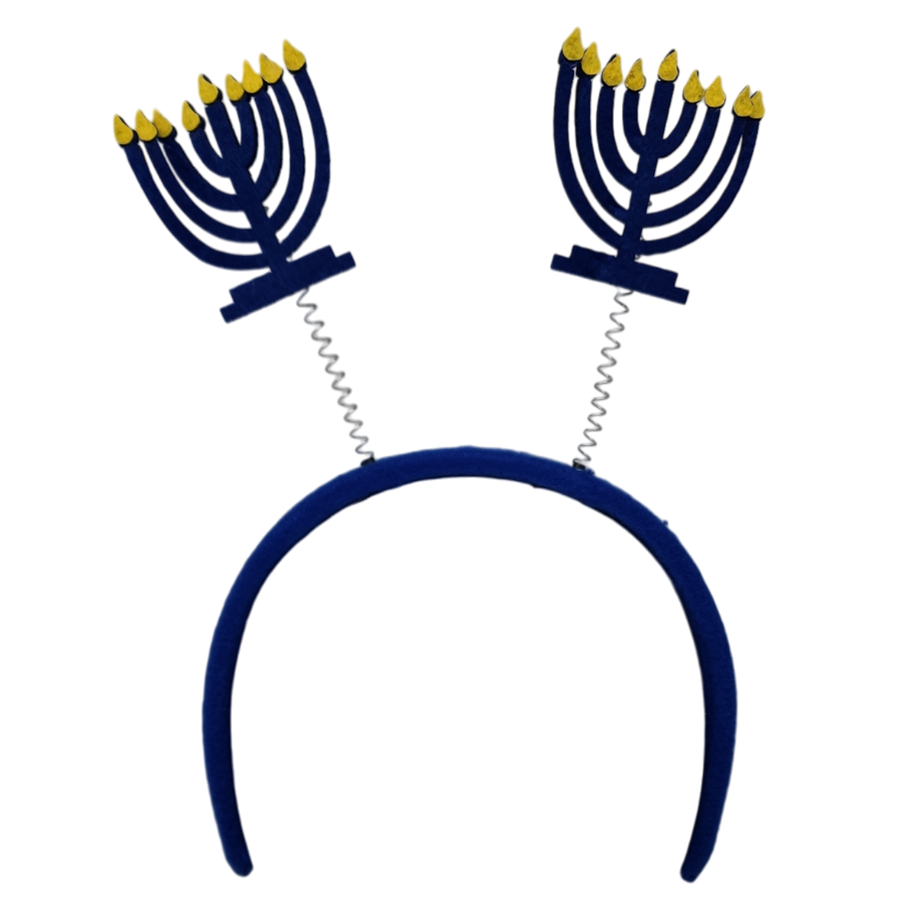 Celebrate the Festival of Lights with our festive Menorah Headbands, perfect for adding some fun and flair to your Hanukkah celebrations! These playful headbands feature two mini Menorahs, each adorned with vibrant yellow candles, that bring a cheerful touch to any gathering. Crafted for comfort and style, the headbands are designed to fit most sizes, making them perfect for both adults and children to enjoy.