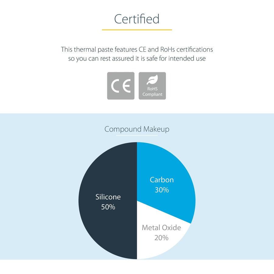 The StarTech.com Advantage - Better thermal conductivity over standard silicon-based compounds and negligible electrical conductivity for effective and safe use in high performance applications