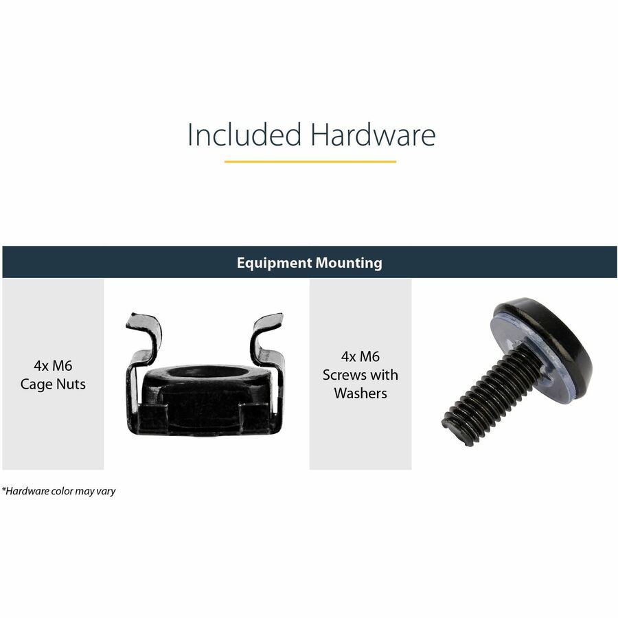 StarTech.com 2U Server Rack Shelf - Universal Vented Rack Mount Cantilever Tray for 19" Network Equipment Rack & Cabinet - Heavy Duty Steel – Weight Capacity 50lb/23kg - 22" Deep Shelf, Black. Type: Rack shelf, Product colour: Black, Housing material: Steel. Width: 482.7 mm, Depth: 55.9 mm, Height: 88 mm. Package width: 505 mm, Package depth: 580 mm, Package height: 115 mm. Master (outer) case width: 505 mm, Master (outer) case length: 580 mm, Master (outer) case height: 115 mm