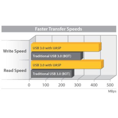 Improved Performance with UASP UASP is supported in Windows 8, Mac OSX (10.8 or above), and Linux. In testing UASP performs with a 70% faster read speed and 40% faster write speed over traditional USB 3.0 at peak performance.