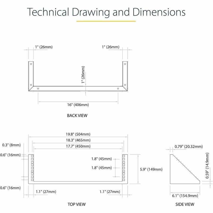 Need more storage space? StarTech.com also offers a 1U 19in Wallmount Bracket, a 2U 19in Wallmount Bracket and a 4U 19in Wallmount Bracket.