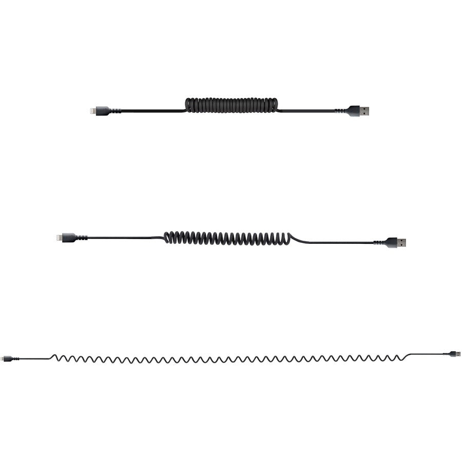 50cm/20in USB to Lightning Cable, MFi Certified Coiled CableThis coiled Lightning to USB A cable can withstand the daily demands of charging and syncing your mobile devices. It contracts to 1ft (32cm) making it compact and convenient to store.Built for Daily UseThe durable Lightning charging cable has aramid fiber reinforcement that shelters it from the stress of frequent bends. This also lets the cable flex without over-stretching or damaging the core of the cable.Flexible Strain ReliefThe Lightning to USB A cable is constructed to prevent the connector from separating from the jacket. The extra-long strain relief molding is tested to withstand over 5,000+ bend cycles at a 180° angle.Superior ConnectionThe durable cable supports all USB 2.0 specifications providing a dependable connection for all your Lightning devices. It is also Apple MFi certified which is guaranteed for fast and reliable charge and sync from USB-A charging ports.RUSB2ALT50CMBC is backed by a StarTech.com® 2-year warranty and free lifetime technical support.The StarTech.com Advantage