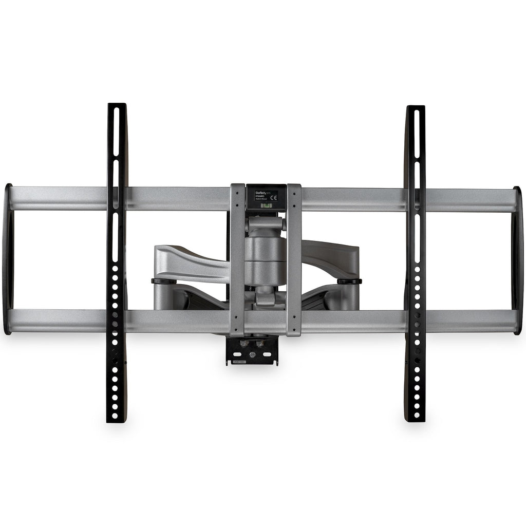 StarTech.com Full Motion TV Wall Mount - Heavy Duty Articulating TV Wall Mount Bracket for 32" to 75" (165lb/75kg) VESA Display - Universal Adjustable Tilt/Swivel Flat Screen Arm - Silver. Maximum weight capacity: 85 kg, Minimum screen size: 81.3 cm (32"), Maximum screen size: 190.5 cm (75"), Minimum VESA mount: 150 x 100 mm, Maximum VESA mount: 800 x 500 mm. Tilt angle range: -15 - 15°, Swivel angle range: -60 - 60°, Distance to the wall (min): 10.5 cm, Distance to the wall (max): 55 cm. Product colour: Black, Silver