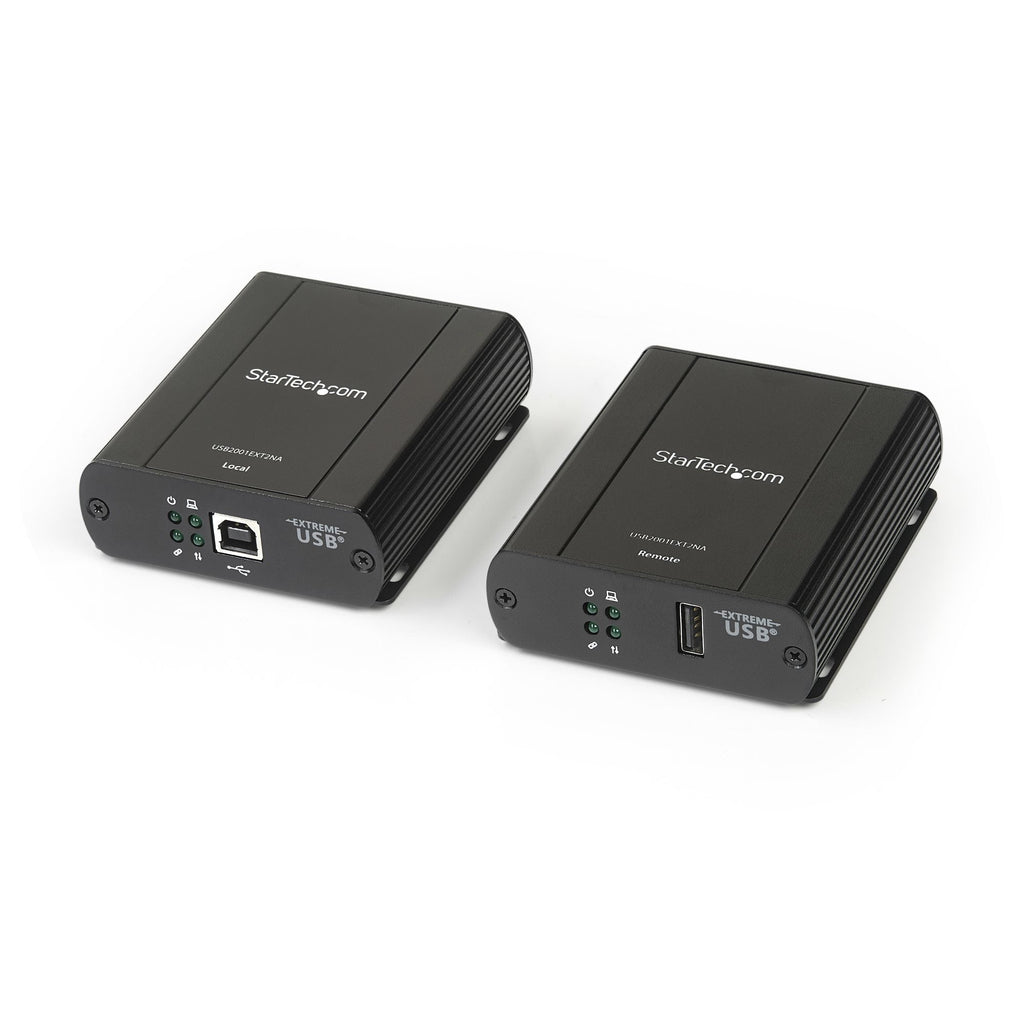 The USB2001EXTNA USB 2.0 extender over ethernet lets you extend a USB 2.0 connection over distances of up to 100-meters (330-feet), over standard Cat5e or Cat6 ethernet LAN cabling.
