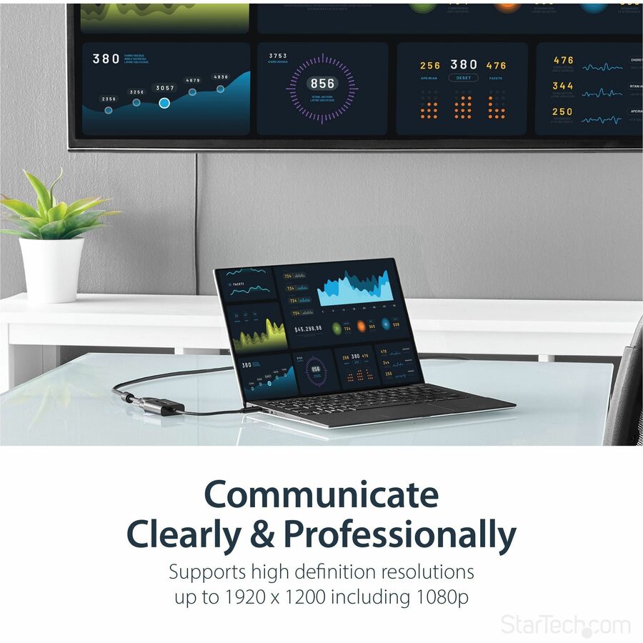 This USB-C to VGA video adapter lets you output high-definition VGA video from your USB Type-C device.