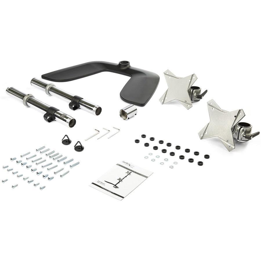 StarTech.com Vertical Dual Monitor Stand - Ergonomic Desktop Stacked Two Monitor Stand up to 27 inch VESA Mount Displays - Free Standing Universal Monitor Mount - Height Adjustable - Silver. Mounting: Freestanding, Maximum weight capacity: 16 kg, Minimum screen size: 33 cm (13"), Maximum screen size: 68.6 cm (27"), Minimum VESA mount: 75 x 75 mm, Maximum VESA mount: 100 x 100 mm. Height adjustment, Swivel angle range: -15 - 15°, Tilt angle range: -15 - 15°. Product colour: Black, Silver