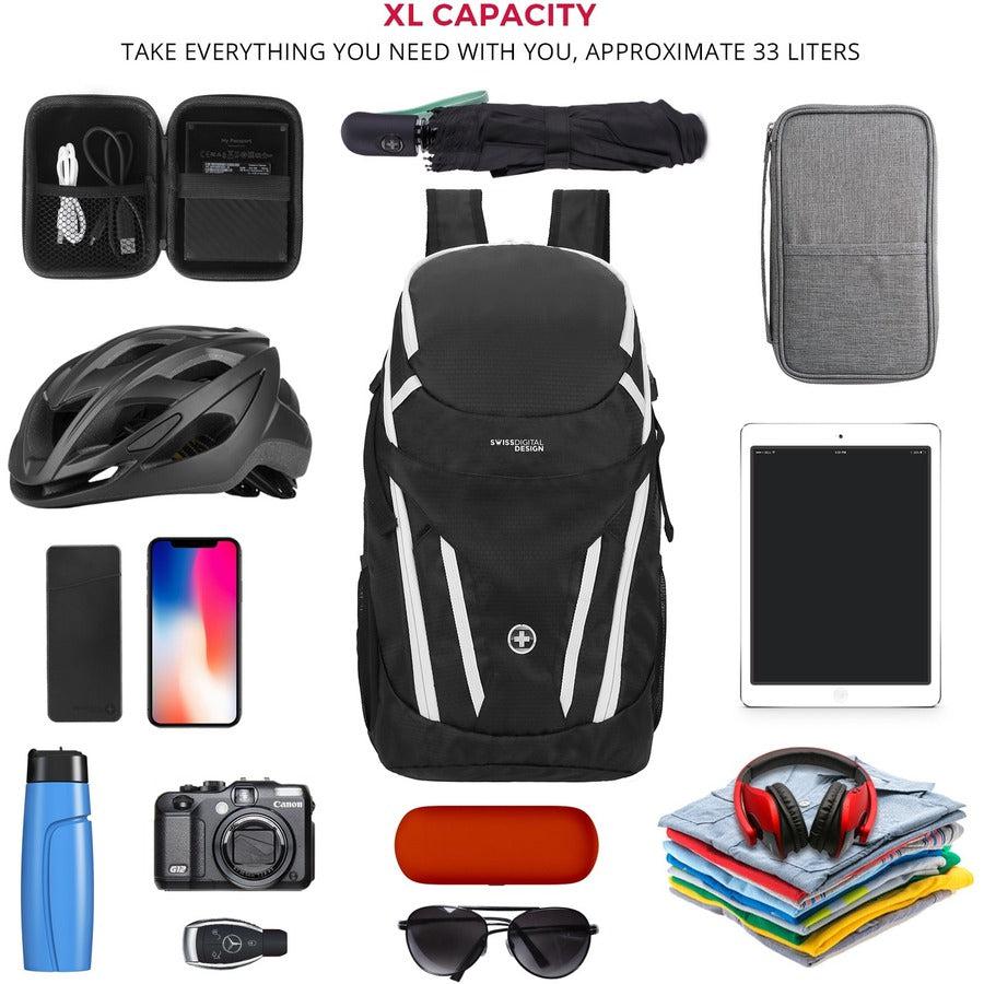 Swissdigital Design backpacks are designed for the new "Commuter Urban Traveler". Take your laptop, tablet, cell phones, books, water bottle, mask and other essentials in your backpack for local trips to cafes, hangouts, parks, beaches, lakes, mountain trails or other places.