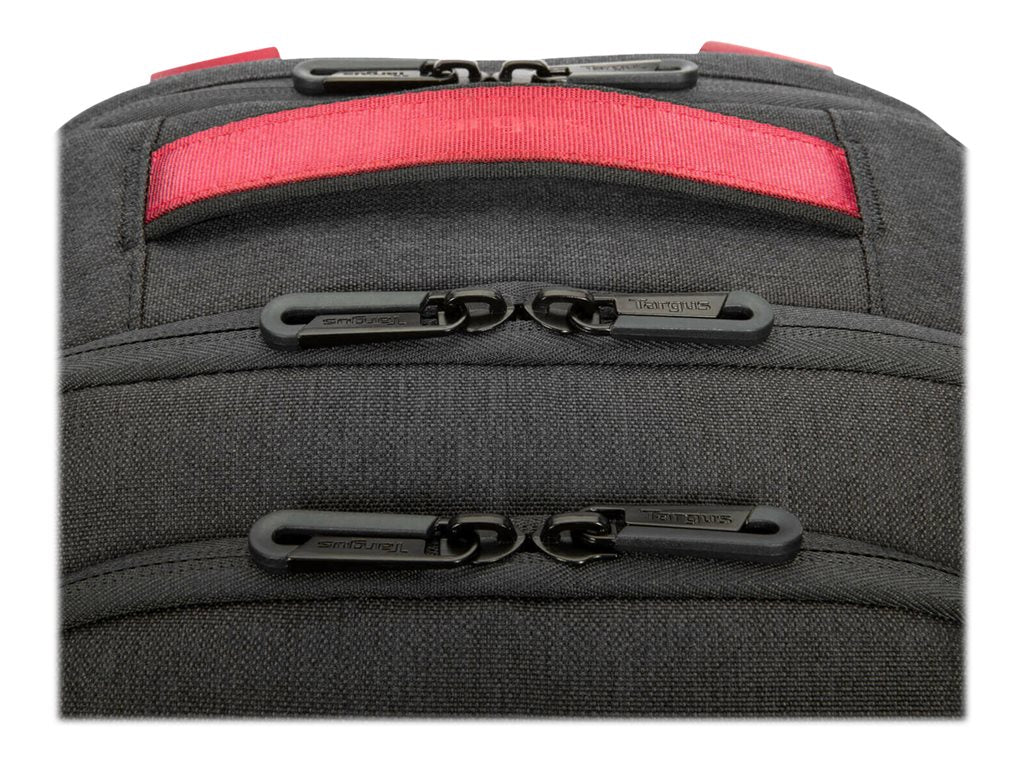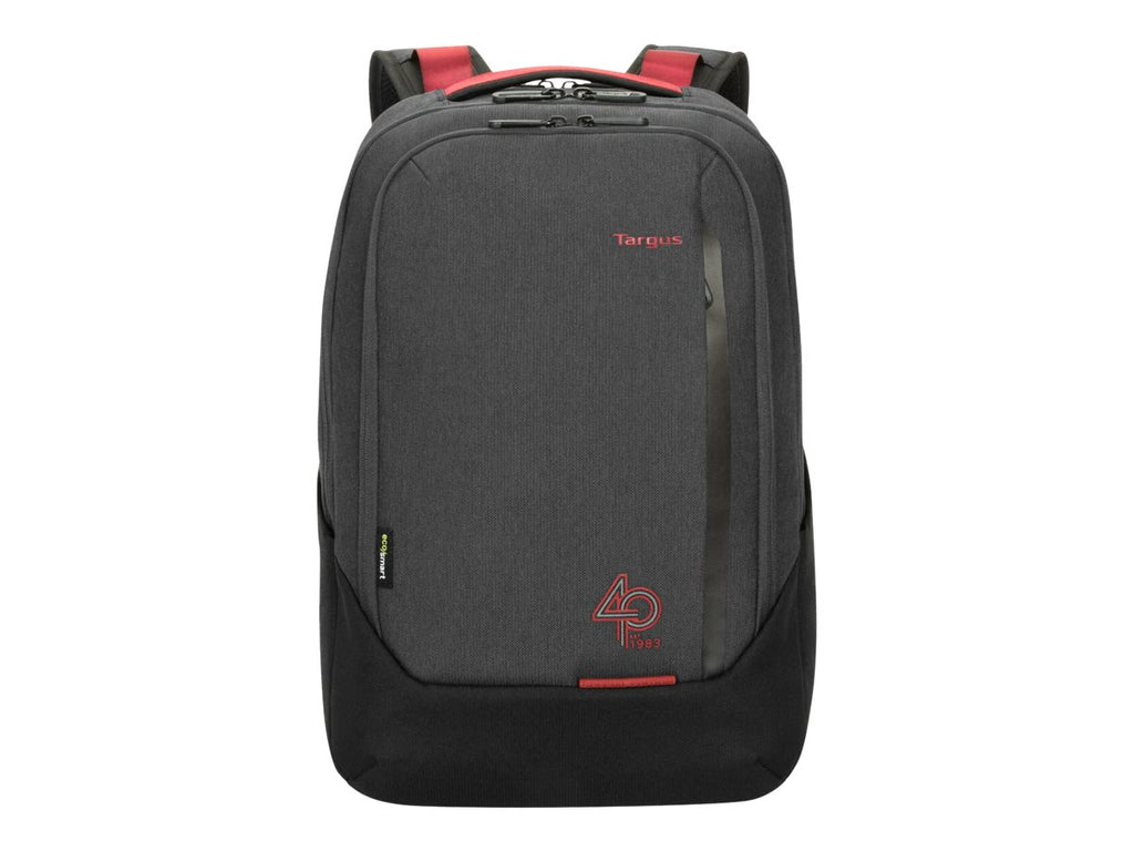 Join us as we celebrate 40 years as a leader in mobile computing accessories. Targus is proud to introduce its limited edition 15.6 40th Anniversary Cypress Hero EcoSmart Backpack. This bag boasts a new dark charcoal exterior with ruby red accents and matching interior. It displays special milestone details and an elevated design.