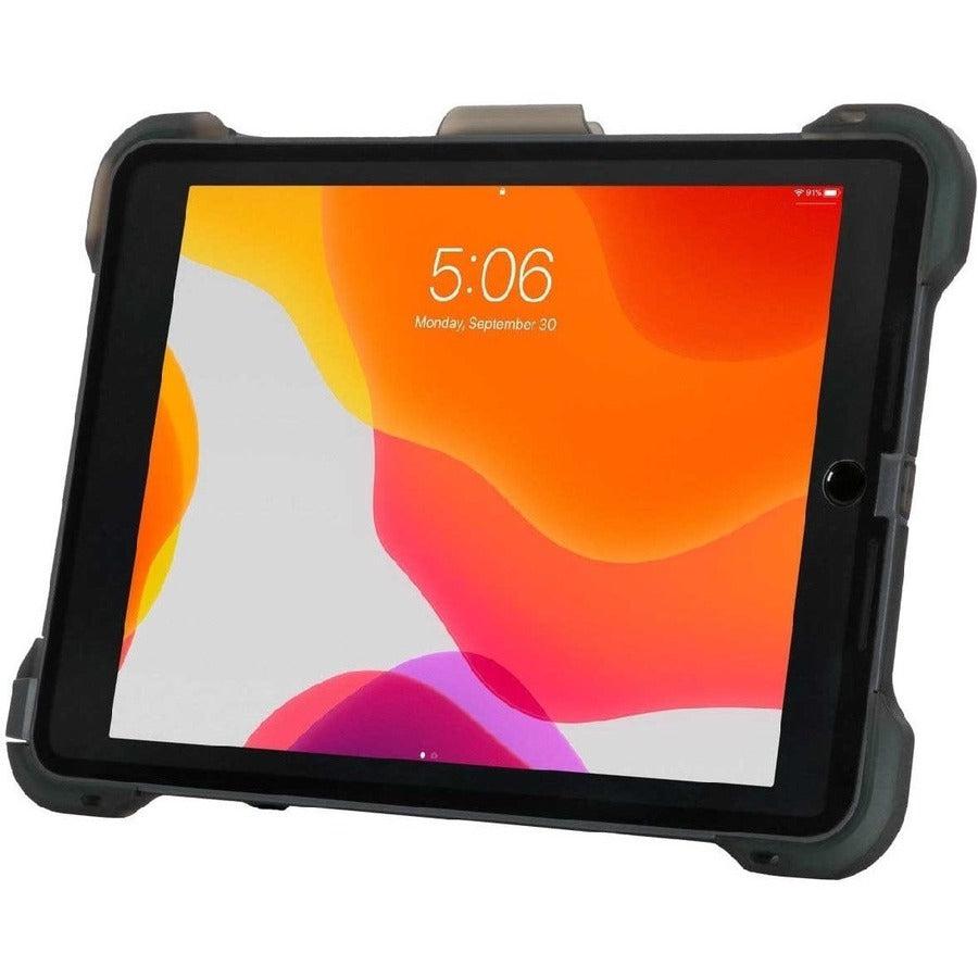 Whether you’re traveling, in the office, or at a remote job site, the Targus® SafePort® Rugged Max Antimicrobial Case for iPad® (9th, 8th and 7th gen.) 10.2-inch provides ultimate coverage and maximum protection for your iPad. From its three-piece, over-moulded shell with shock-absorbing materials to the advanced corner Blue Shock Technology, it meets the rigorous MIL-STD-810G standards that protect from harsh environmental conditions, sudden drops, and accidental slips.* It’s designed with an integrated, bezel-free screen protector, and silicone port covers to protect the audio and power ports when necessary. You can rest assured this rugged case provides the best, all around protection from everyday use, water, drops, dust, or force***.