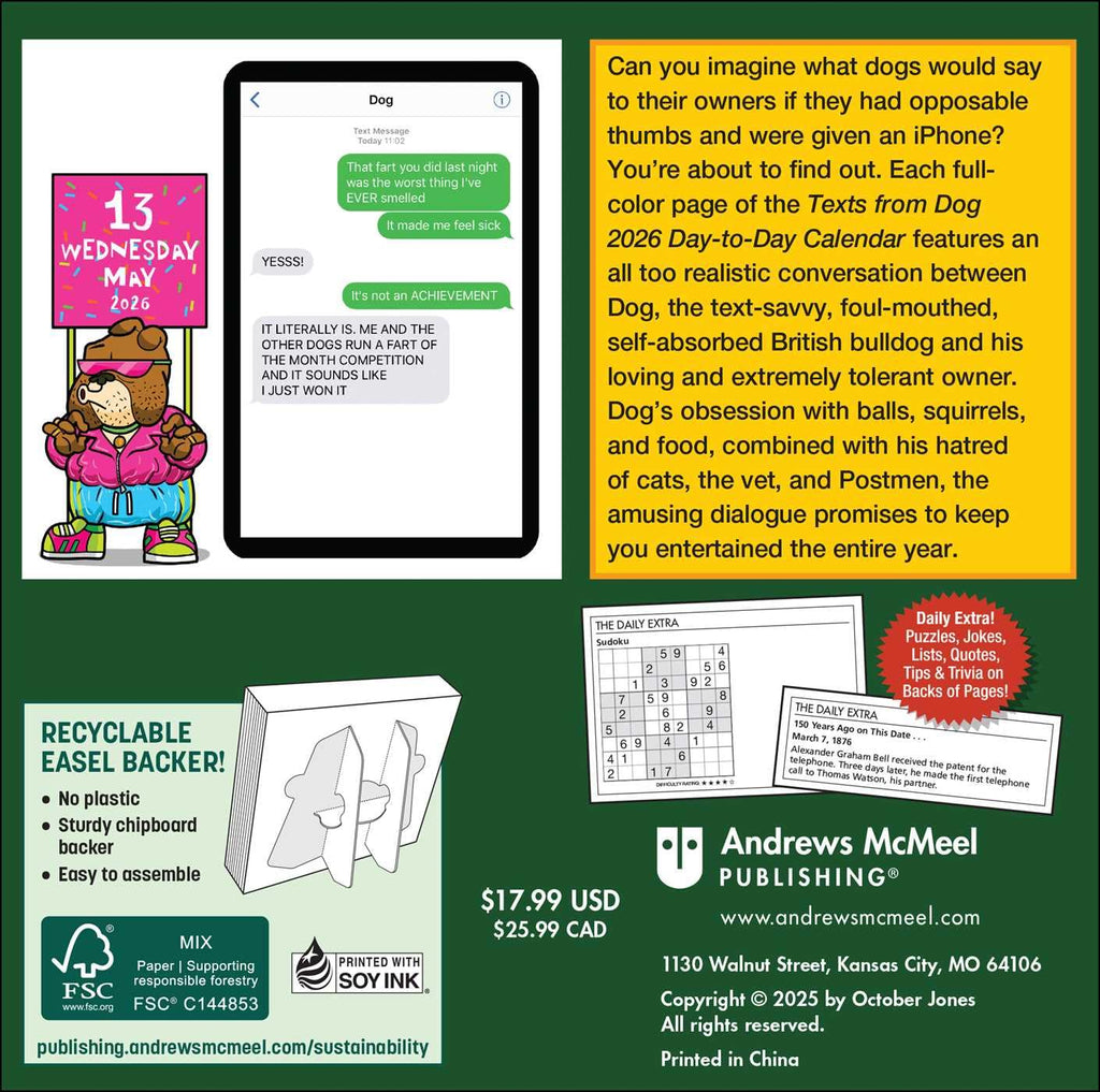 Get ready to experience the hilarity and heartwarming observations of your furry friend with the Texts from Dog 2026 Day-to-Day Calendar! This charming calendar transforms your daily routine into a delightful adventure, featuring a new and funny text message from Dog each day that captures the wit and whimsy of our four-legged companions. Perfect for dog owners and animal lovers alike, this calendar provides a daily dose of laughs while exploring the mischievous thoughts that might run through a dog's mind—whether it’s an update on neighborhood cats, strategies against squirrels, or just a simple request for cuddles.