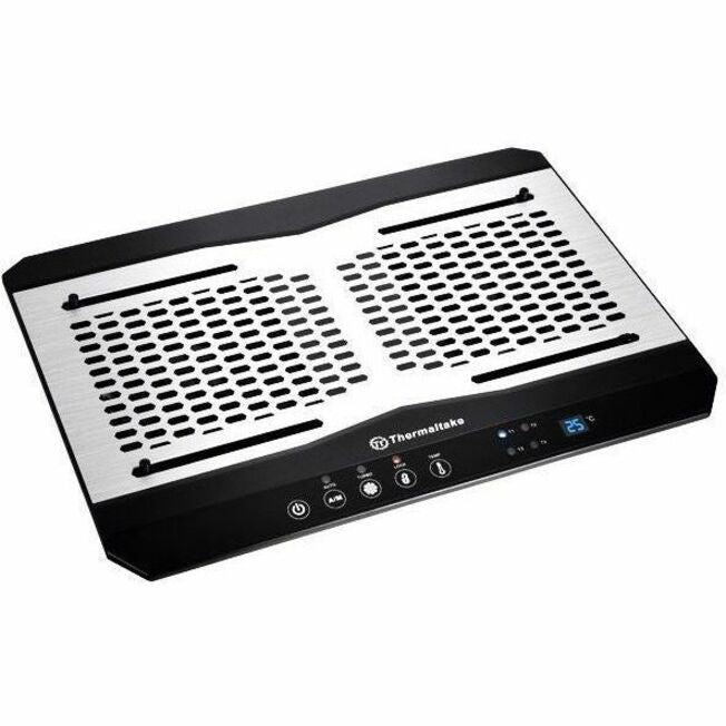 Massive TM notebook cooler, thin and light, designed with Thermaltake the first ever adjustable temperature sensor, display control panel, aluminum design and dual 120mm temperature regulated fans to suit user’s preference in accordance with the laptop size or various heat generated points to create the best thermal performance. The excellent ergonomic design makes the most comfortable viewing angle and hand position.