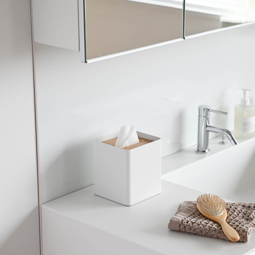 Redesigned to fit standard U.S. tissue boxes! Simply place a standard square tissue box inside and thread the first tissue through the wooden top to start working on those sniffles. (Tissues not included!)