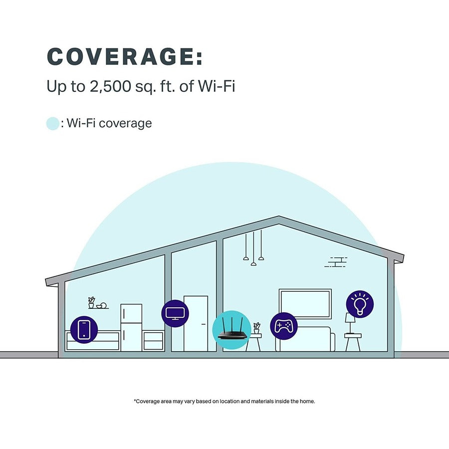 - Router for wireless internet, works with Alexa, compatible with all Wi-Fi devices, 802.11ac and older.
