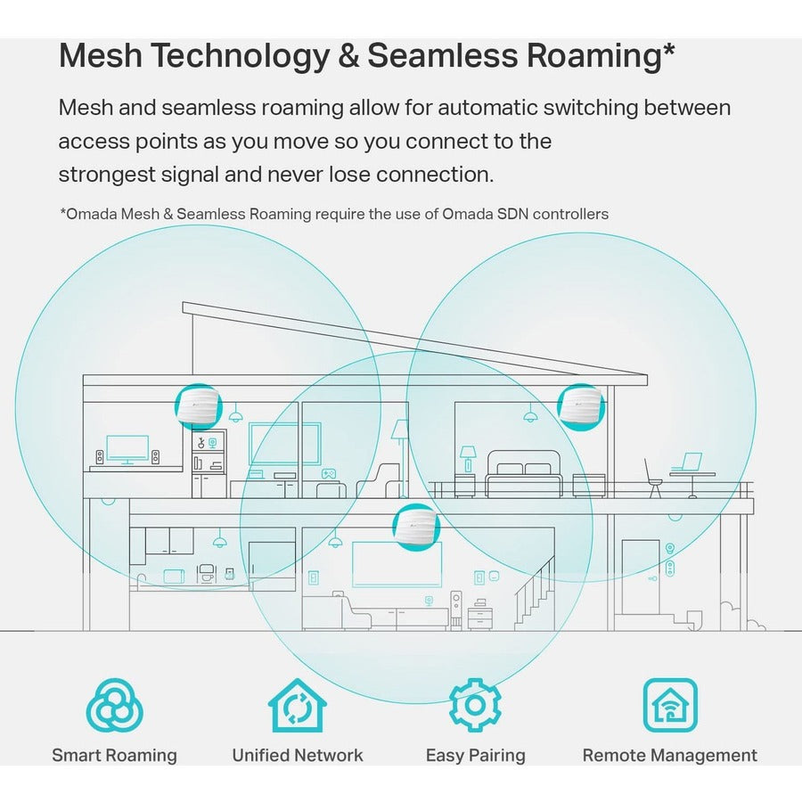 - Advanced Wireless Tech - Supports Mesh WiFi, Seamless Roaming(Omada Mesh & Seamless Roaming require the use of Omada SDN controllers), Band Steering, Airtime Fairness and Beamforming technologies.