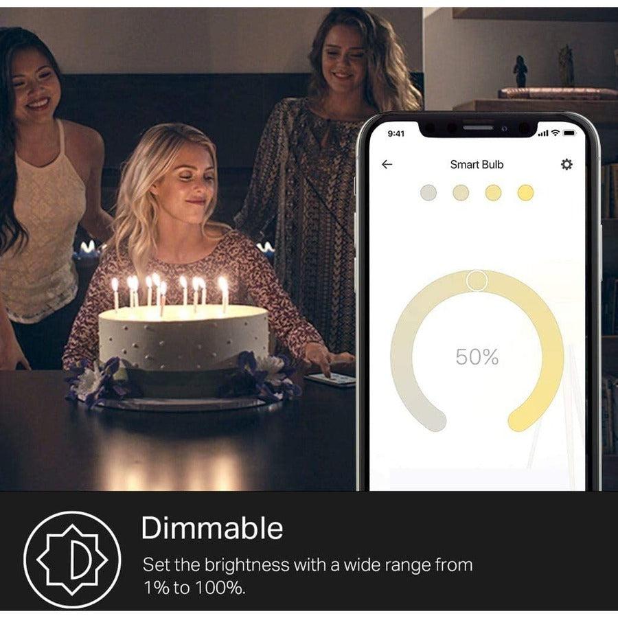 Kasa Smart's dimmable light bulb has a dimming range from 1% to 100%. Set the right brightness for any mood or activity.