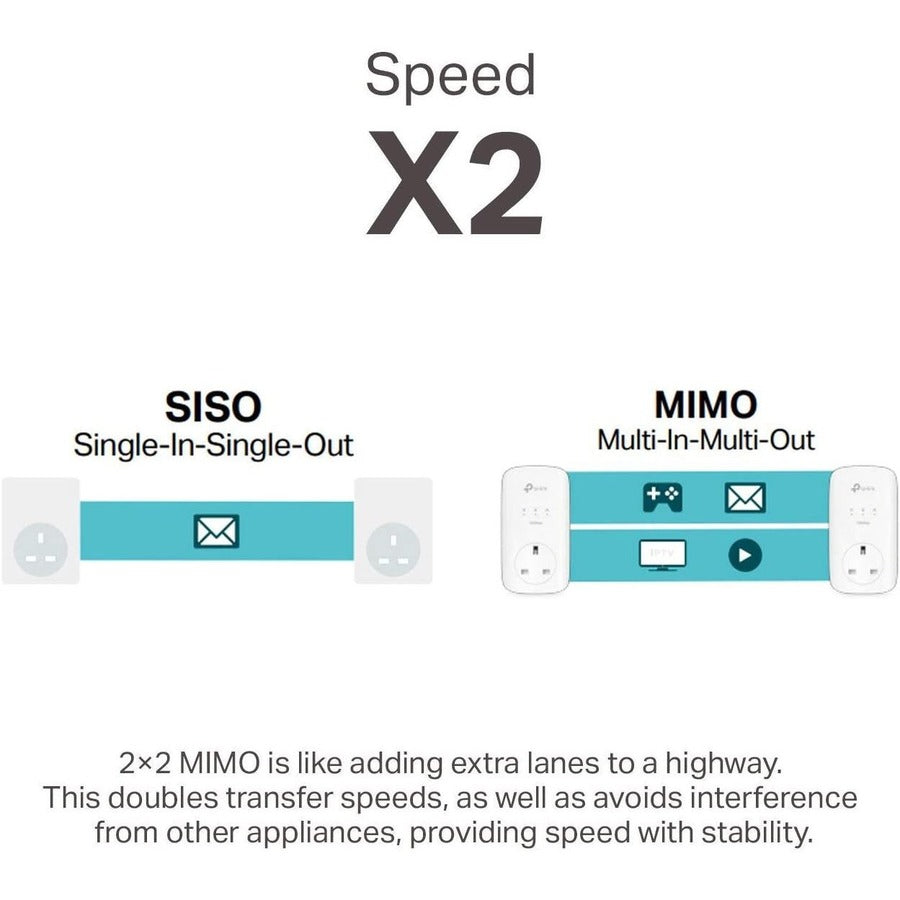 With advanced HomePlug AV2 MIMO, TL-PA9020P delivers 4x faster speed than legacy Homeplug AV500 over Powerline to provide superior network performance, supporting all of your online needs. With a lag-free connection, you will never miss out again.