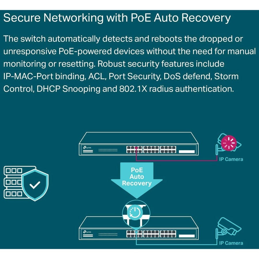 - Enhance Network Security: Advanced security features include 802.1Q VLAN, IP-MAC-Port binding, ACL, Port Security, DoS defend, Storm control, DHCP Snooping, 802.1X radius authentication and more.