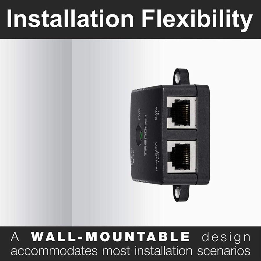 The Gigabit Power over Ethernet Injector, model TPE-113GI, combines electrical power with a Gigabit network connection to produce a Gigabit Power over Ethernet (PoE) signal. Connect this device to a non-PoE switch and then run an Ethernet cable for up to 100 meters (328 Ft.) to network PoE devices. No need to buy a PoE switch—use an existing open port from a non-PoE switch to save installation and equipment costs when installing TRENDnet PoE access points and IP cameras in remote locations. This compact device safeguards valuable network equipment with short circuit protection. Quickly create an integrated PoE and non-PoE network at Gigabit speeds.