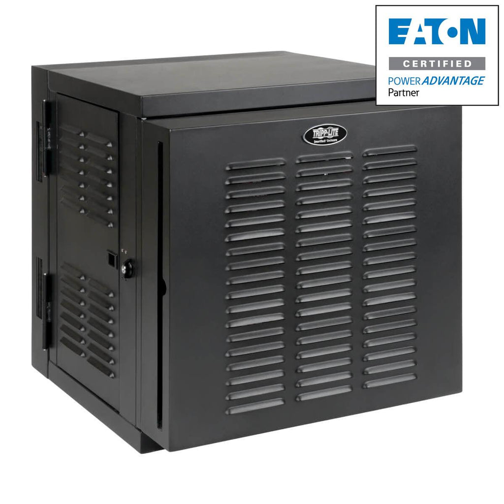 - Maximum load capacity of 90 kg (200 lb) - NEMA 12 (IP54) rating against dirt, dust, drips and splashes - Swings away from wall on hinge for easy back-door access - Locking steel cabinet with built-in ventilation fans - Secures 12U of 19 in. rack equipment up to 20.5 in. deep - Perfect for factories, construction areas, utility plants, power stations, transportation terminals, distribution hubs, warehouses and other harsh, dirty work environments where you need equipment to be secure, organized, out of the way and protected from environmental contaminants - Houses EIA-standard 19 in. rack equipment in 12U of space - Maximum load capacity of 90 kgs (200 lbs) - Built-in air filter, louvered vents and sealing door gaskets keep out dirt, dust, lint, oil, drips and splashes - Removable air filter can be replaced with standard, off-the-shelf furnace filters - Built-in high-performance door fans plug into standard NEMA 5-15R outlet (1.83 m (6-ft.) power cord included) - Sealed cable ports maintain dust and moisture resistance - Hinged Cabinet for Convenient Access: Swings away from the wall to allow easy back-door access to equipment and cabling during installation and maintenance - Reversible doors can open left or right to accommodate various rack configurations - Side panels and doors lock securely to help prevent damage, tampering or theft - Vented panels and built-in fans provide generous airflow to keep equipment cool - Convenient ports with removable covers and protective brush strips allow cable routing through rear door - Ships fully assembled for quick installation - Mounts to wall or rolls on floor with Tripp Lite’s optional SRCASTER caster kit - Wall-mounting holes spaced 16 in. apart for standard wall stud placement - Vertical mounting rails adjust in 7/8 in. increments to accommodate equipment up to 20.5 in. deep, such as network switches and patch panels - Rails adjust easily—unscrew them, slide them to desired depth, and screw them back in - Rails support square-hole or threaded-hole mounting - Rack spaces numbered for easy reference - Provides physical equipment and media security required for PCI DSS (Payment Card Industry Data Security Standard) compliance