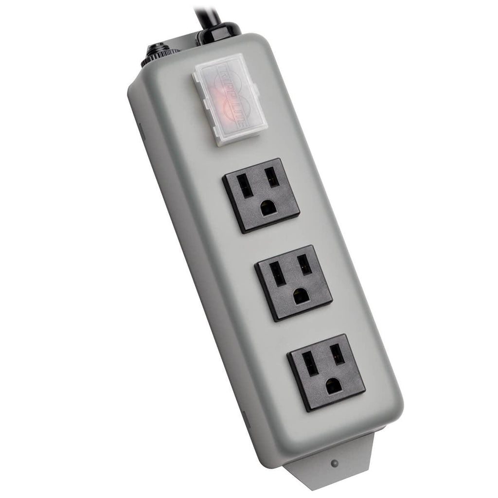 The Waber-by-Tripp Lite 3SP power strip offers a convenient method of power distribution in workbench, wallmount or floor mount applications. Includes 3 NEMA 5-15R output receptacles with 1.75-inch center-to-center spacing, 6-foot AC line cord and keyhole mounting tabs for installation in a wide variety of applications. Corded, multi-outlet strip reduces cable clutter and permits connection of multiple electrical devices to a single AC wall socket. Unfiltered electrical pass-through makes the 3SP ideal for distributing alternate waveform UPS or generator power. Features a rugged all-metal housing, lighted power switch with transparent guard to prevent accidental shutoff, 15-amp resettable circuit breaker and attractive blue/gray color scheme.