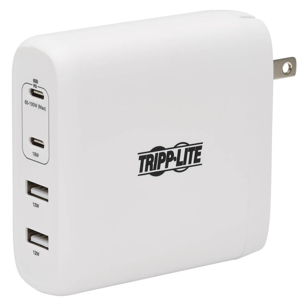 Tripp Lite 4-Port Compact USB Wall Charger - GaN Technology, 100W PD Charging, 2 USB-C & 2 USB-A, White. Charger type: Indoor, Power source type: AC, Charger compatibility: Universal. Input voltage: 100 - 240 V, Maximum output voltage: 20 V. USB Type-C ports quantity: 2, Power protection features: Over current. Product colour: White