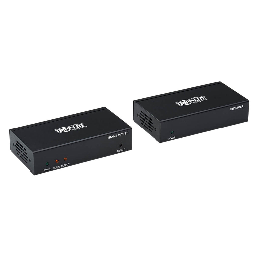 Plug-and-Play Operation for Quick Setup and Immediate Use The included transmitter and receiver units work right out of the box with no software required. Mounting hardware is included for installing the units on walls, poles or 19-inch racks. Connect the transmitter to the source and the receiver to the display with user-supplied HDMI cables (such as Tripp Lite's P568- or P569-Series). Then, connect the two units using Cat6 patch cable (such as Tripp Lite N202-Series cable). Connect an optional display to the transmitter's local HDMI output to monitor the image connected to the receiver up to 125 feet away.