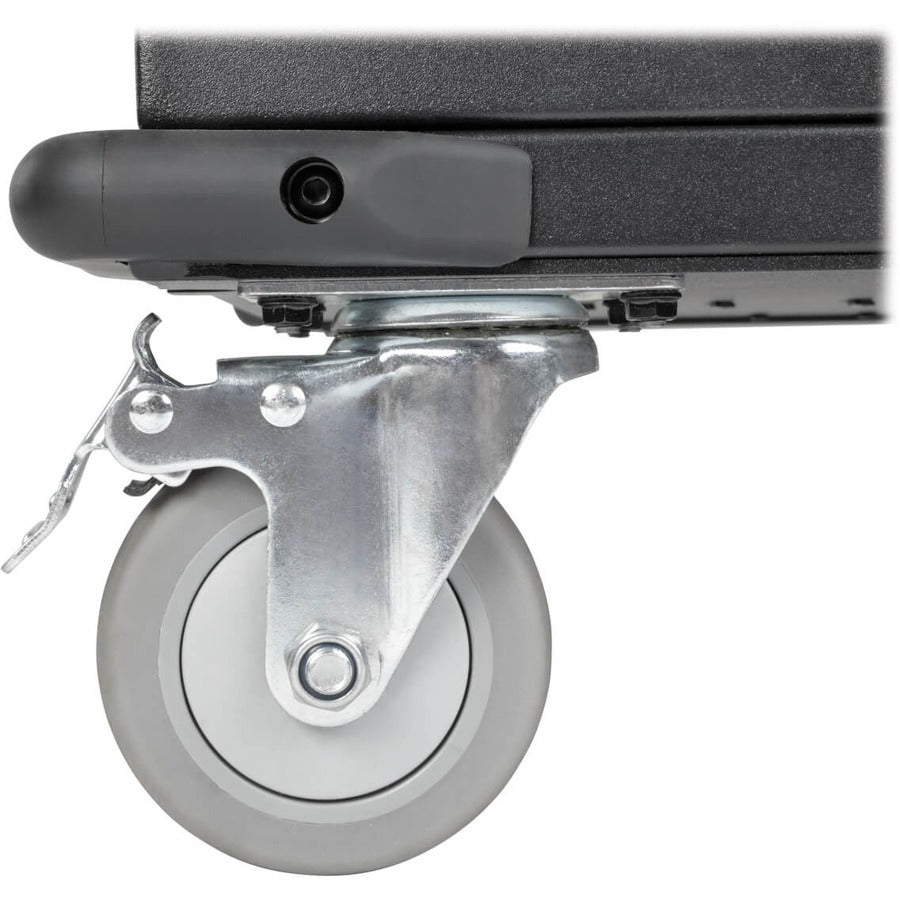 Moving Your Devices from Room to Room Is Easy Large swivel casters with non-marking wheels improve the ride over uneven surfaces, including carpeting and thresholds, and lock to help prevent unwanted movement. The reversible wide-grip handle makes the cart easy to control. Corner safety bumpers protect walls and doorways from scratches. The compact cart takes up about the same amount of physical space, or even less, as a typical A/V cart.