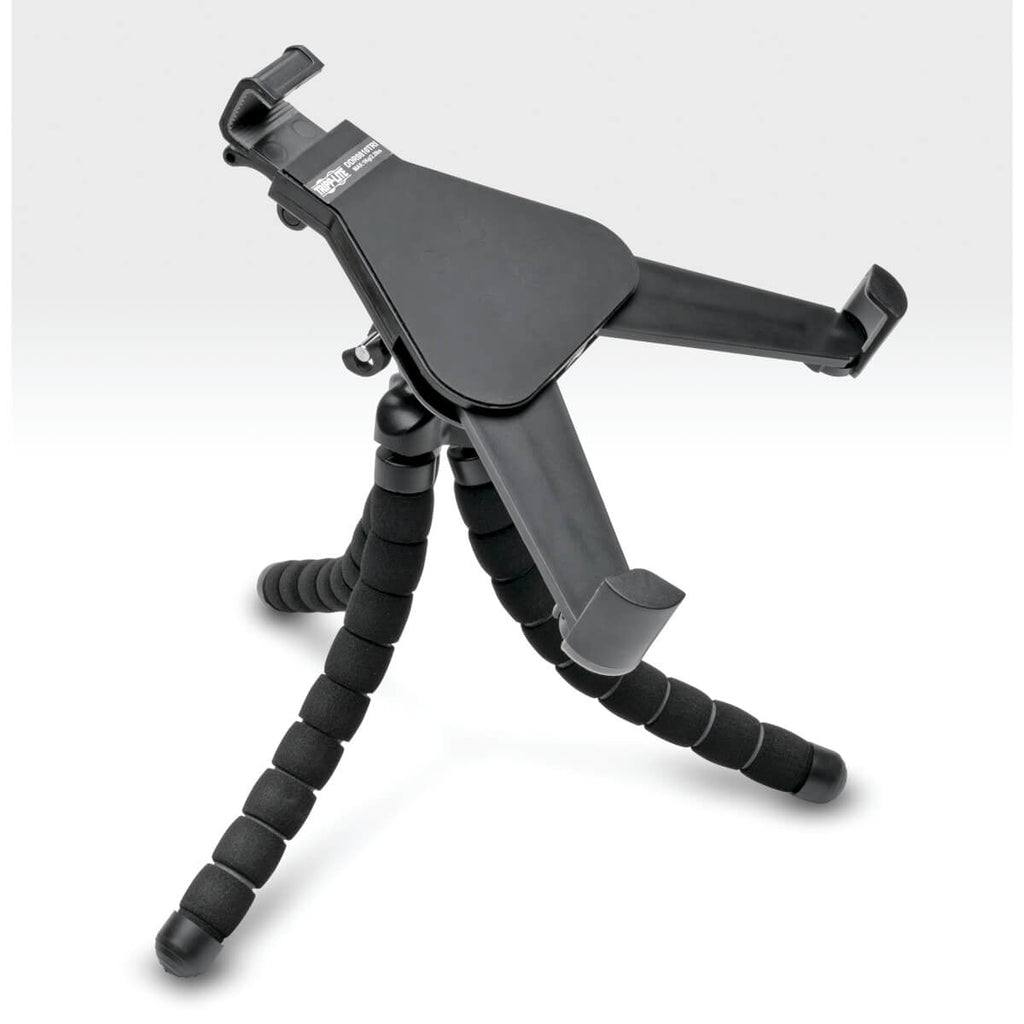 The DDR0810TRI Full-Motion Universal Flexible Tablet Stand rests securely on your desk, table, workstation or almost any other surface to maximize space and offer hands-free stability. It fits most tablets from 8 to 10 inches. Its flexible eight-inch legs bend to steady your tablet on uneven surfaces and can even wrap around objects for maximum effect. Rubber feet provide a strong grip on most surfaces. Tripod design rotates 360°, so you can view your tablet in portrait or landscape orientation. Easy assembly in seconds with no tools necessary. Supports up to 2.2 lbs (1 kg).