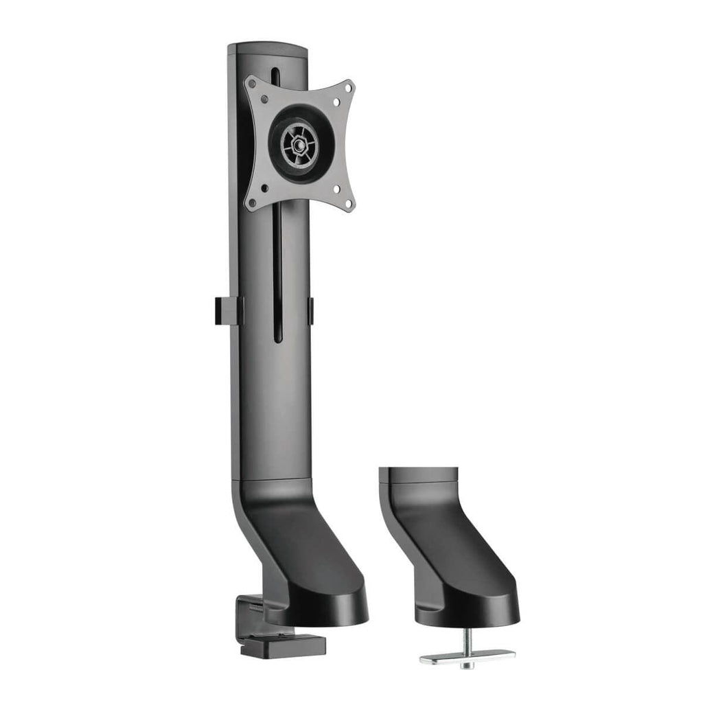 Tripp Lite DDR1732SC Single-Display Monitor Arm with Desk Clamp and Grommet - Height Adjustable, 17” to 32” Monitors. Mounting: Clamp/Bolt-through, Maximum weight capacity: 8 kg, Minimum screen size: 43.2 cm (17"), Maximum screen size: 81.3 cm (32"), Minimum VESA mount: 75 x 75 mm, Maximum VESA mount: 100 x 100 mm. Height adjustment, Swivel angle range: -10 - 10°, Tilt angle range: -10 - 10°. Product colour: Black