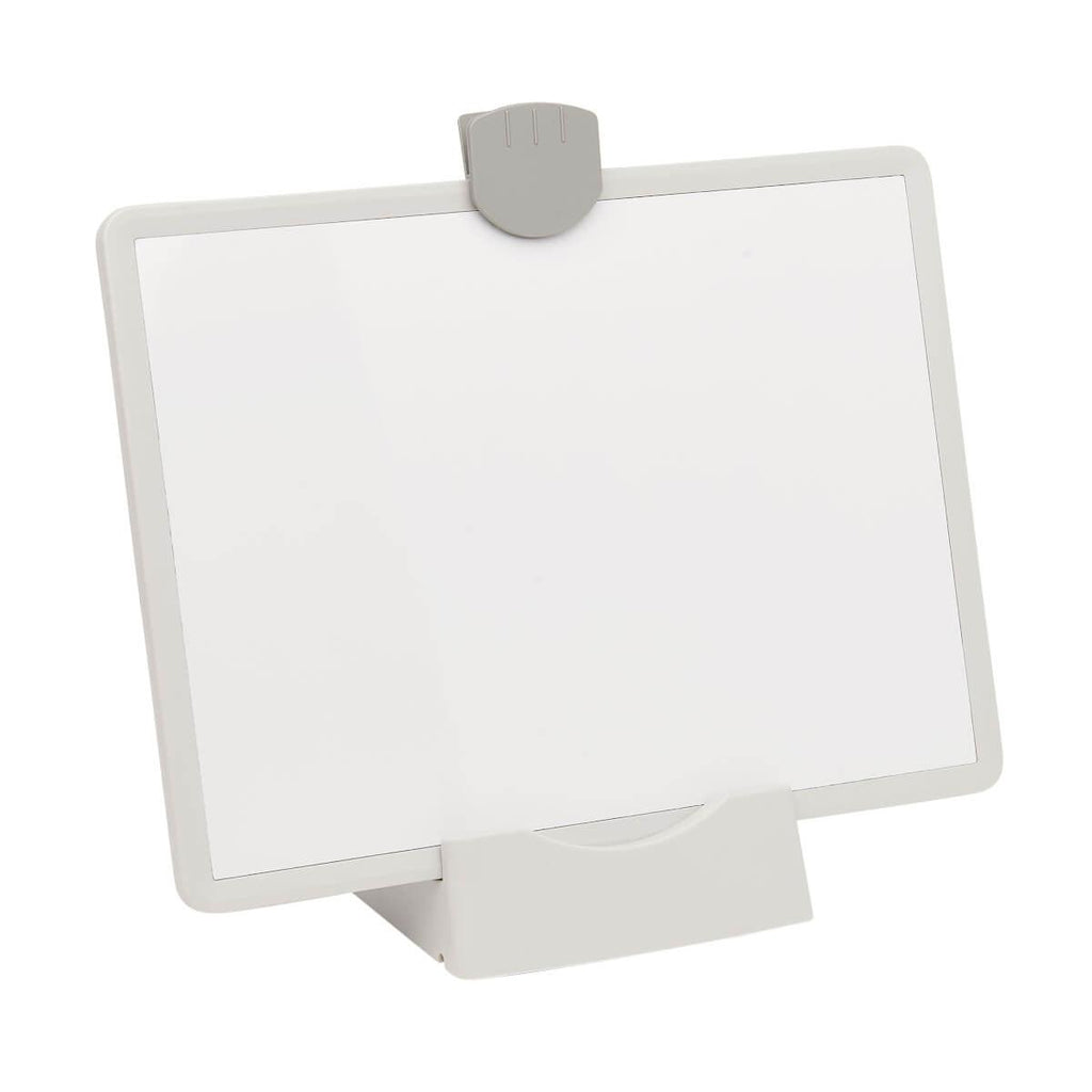 Versatile Display Options Provide an Alternative to Permanent Mounting You can also display the whiteboard using the fold-out rear legs as an easel, or use the included plastic holder for desk support. The holder features cable management openings for use with your smartphone or tablet when it isn’t supporting the whiteboard.
