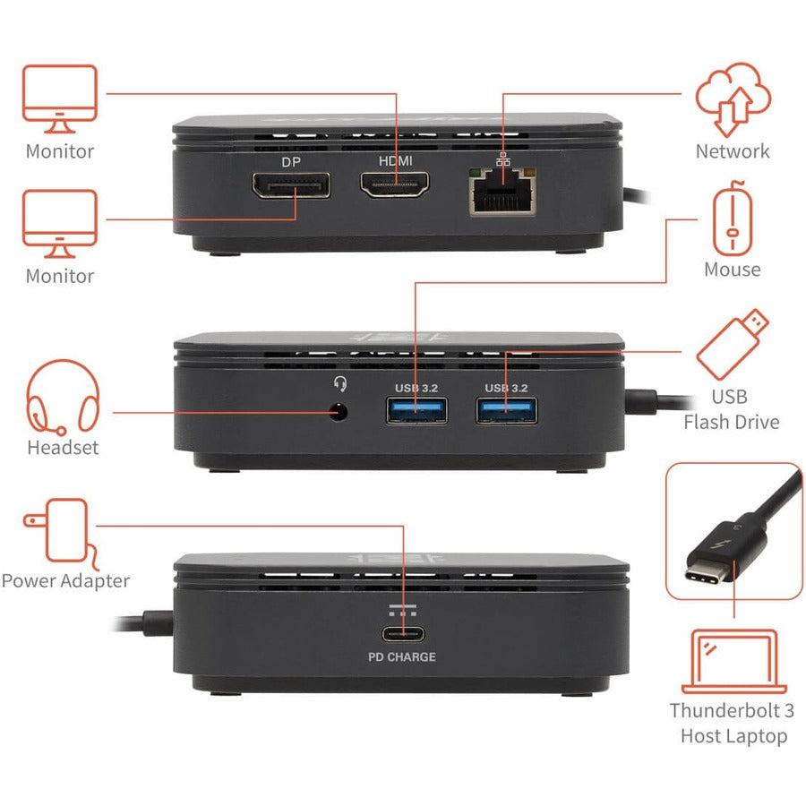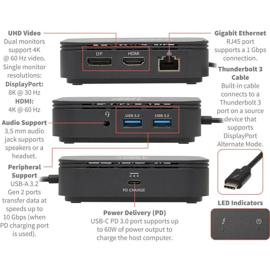 Thunderbolt 3 Dual Monitor Docking Station - 8K/30Hz DisplayPort, 4K/60Hz HDMI, USB 3.1 Gen 2, GbE, 60W PD Charging - Black