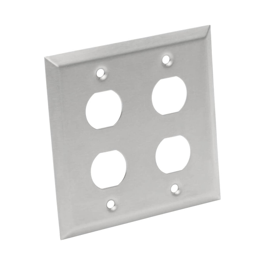 4 Port Double Gang Faceplate, Stainless Steel, Industrial Grade, IP44, TAA