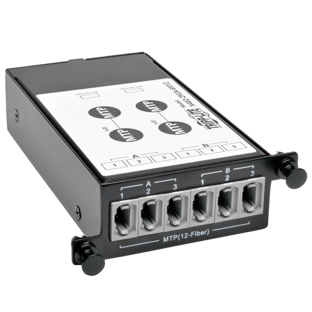 Tripp Lite N482-2M24-6M12 100Gb/120Gb to 40Gb Breakout Cassette - (x2) 24-Fiber MTP/MPO ( Male with Pins ) to (x6) 12-Fiber OM4 MTP/MPO ( Male with Pins ). Maximum data transfer rate: 120000 Mbit/s, Connector(s): MTP. Product colour: Black, Material: Steel, Mounting: Rack mounting. Width: 88.9 mm, Height: 30.5 mm, Depth: 119.4 mm. Package width: 200.7 mm, Package depth: 119.4 mm, Package height: 50.8 mm. Country of origin: China, Products per pallet: 1 pc(s), Master (outer) case width: 391.2 mm