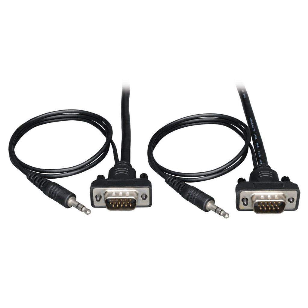 Slim, compact SVGA / VGA Male - Male Cable with Audio, 6ft 40% thinner cable than standard VGA Cables Smaller, more compact, molded ends than standard VGA cables Supports up to 2048x1536 Resolution 22-inch Audio 3.5mm Stereo pigtails Foil and Braid shielded for superior noise suppression VW-1 Rated Jacketing